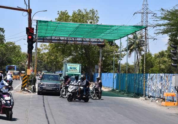 சென்னையில் வெயில் வாட்டி வதைக்கும் நிலையில், பொதுமக்கள் வசதிக்காக மாநகராட்சி சார்பில் ஆங்காங்கே பசுமை பந்தல் அமைக்கப்பட்டுள்ளது. இடம் : நியூ ஆவடி சாலை, அண்ணாநகர் கிழக்கு.