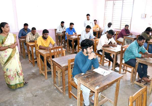 புதுச்சேரி போக்குவரத்து துறை பொறியாளர் வாகன இளநிலை ஆய்வாளர் பணியிடத்திற்காக பாரதிதாசன் கல்லூரியில் தேர்வு நடந்தது.