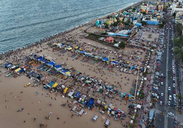 பெசன்ட் நகர் கடற்கரையில் பரப்பளவை மீறி பொதுமக்களுக்கு இடையூறு ஏற்படுத்தும் வகையில் அமைக்கப்பட்டுள்ள கடைகள்.