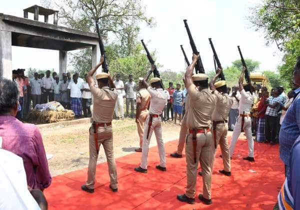 விழுப்புரம் அடுத்த வளவனூர் அருகே பணியின் போது இறந்த போலீசாரின் இறுதி சடங்கு குண்டுகள் முழங்க அரசு மரியாதையுடன் நடந்தது.