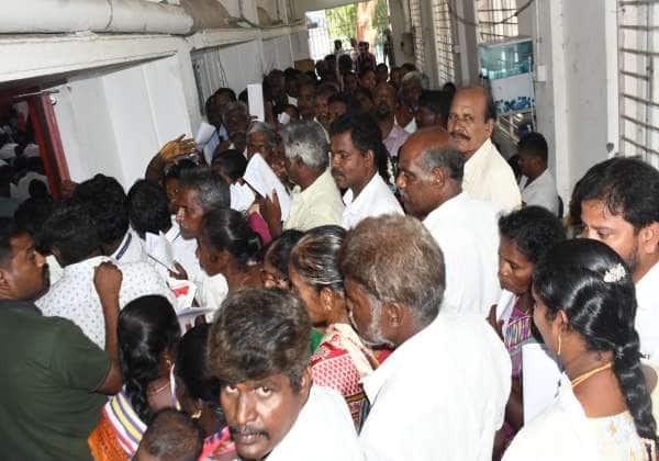 திருவள்ளூர் மாவட்ட ஆட்சியர் அலுவலகத்தில் நடைபெறும் மக்கள் குறைதீர்க்கும் கூட்டத்தில் மனு கொடுக்க வந்திருந்த பொதுமக்கள்