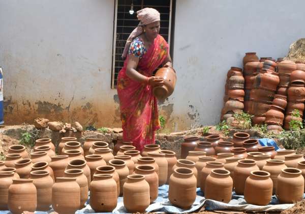 வெயிலுக்கு ஏற்ப தொழில்... திருநெல்வேலி மாவட்டம் காருக்குறிச்சி மண் பாண்ட தொழிலாளர்கள் வெயில் அதிகரிப்பதால் குடிநீர் வைக்கும் மண்பாண்டத்திற்கு முக்கியத்துவம் தந்து உற்பத்தி செய்கின்றனர்.