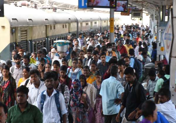 பராமரிப்பு பணிக்காக சென்னை - குமிடிப்பூண்டி மின்சார ரயில் ரத்து செய்யப்பட்டதால் சென்ட்ரல் ரயில் நிலையத்தில் திரண்ட பயணிகள் கூட்டம்.