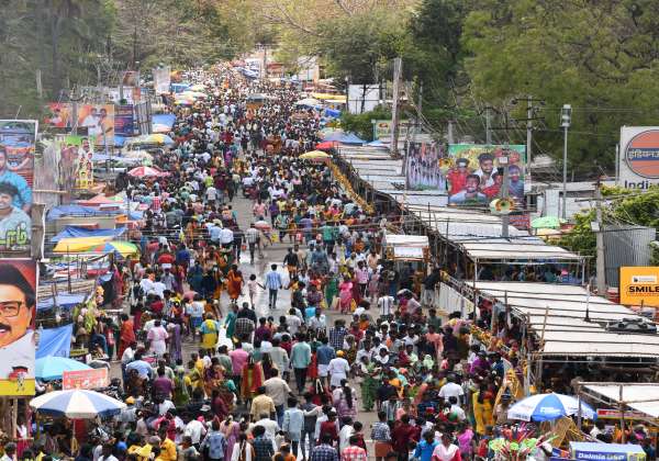 நத்தம் மாரியம்மன் கோயில் மாசித் திருவிழாவை முன்னிட்டு திரண்ட பக்தர்கள் .