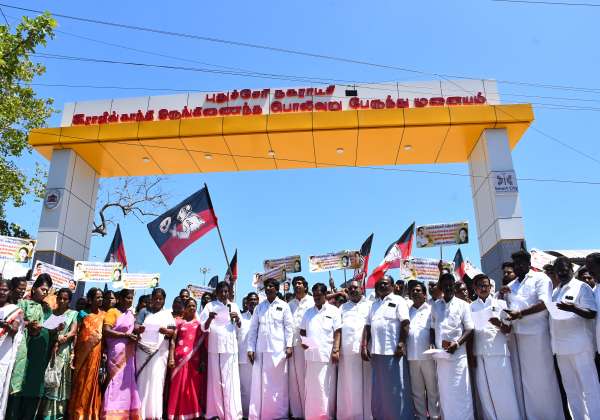 புதுச்சேரி புது பஸ் நிலையத்தை திறக்க வலியுறுத்தி அதிமுக சார்பில் கண்டன ஆர்ப்பாட்டம் நடந்தது.