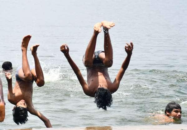 சுட்டெரிக்கும் வெயிலில், ஆனந்த குளியல். இடம் : திருப்பூர், ஆண்டிபாளையம், குளம்.