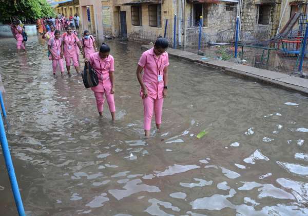 துாத்துக்குடியில் திடீரென பெய்த மழை காரணமாக அரசு மருத்துவக் கல்லூரி மருத்துவமனை வளாகத்தில் குளம்போல் தேங்கிய மழைநீர்.