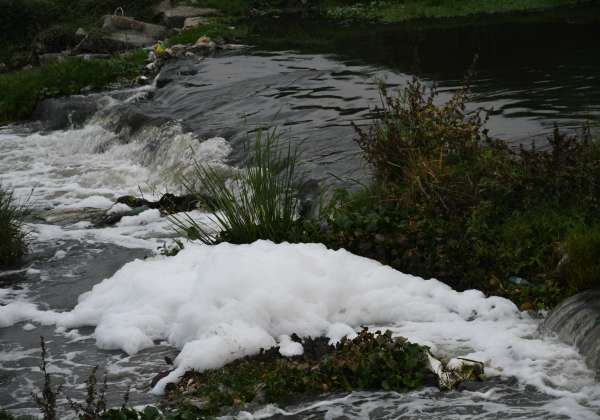உள்ளாட்சிகளில் வெளியேறும் கழிவுநீர் நொய்யலாற்றில் கலந்து வருகிறது. இதனால் திருப்பூர் சத்யா நகர் பகுதியில் நொய்யலாற்றில் நுரையோடு செல்லும் கழிவு நீர்.