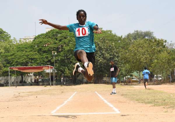 விளையாட்டு கோட்டாவில் 3 சதவீத இட ஒதுக்கீட்டில் தகுதி உள்ளவர்களுக்கு சென்னை எழும்பூர் ராஜரத்தினம் மைதானத்தில் உடல்தகுதி தேர்வு நடைபெற்றது. இதில் நீளம் தாண்டுதல் போட்டியில் ஆர்வமுடன் பங்கேற்ற வீராங்கனை.