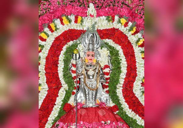 திருப்பூர் போலீஸ் லைன் மாரியம்மன் கோவில் பூச்சாட்டு பொங்கல் விழாவில் வெள்ளி கவச அலங்காரத்தில் பக்தர்களுக்கு அருள்பாலித்த அம்மன்.