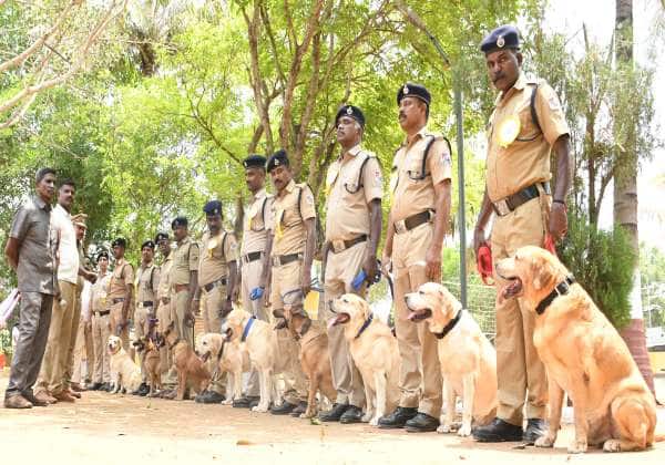 கோவை போத்தனூர் ரயில்வே பாதுகாப்பு படை மோப்ப நாய்கள் பயிற்சி மையத்தில் மோப்ப நாய்களின் திறனாய்வு கண்டறியும் போட்டி துவங்கியது.