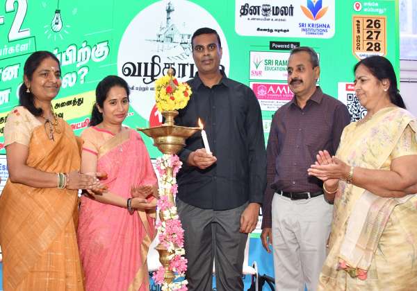 தினமலர் நாளிதழ் மற்றும் ஸ்ரீ கிருஷ்ணா கல்வி குழுமம் சார்பில் கோவை கொடிசியா அரங்கில் மாணவ , மாணவிகளுக்கான வழிகாட்டி நிகழ்ச்சி துவங்கியது.கருத்தரங்கினை (இடமிருந்து) கற்பகம் கல்வி நிறுவனங்கள் கார்ப்பரேட் ரிலேஷன் இயக்குனர் பானு, டாக்டர் என்.ஜி.பி., ஆராய்ச்சி மற்றும் கல்வி அறக்கட்டளை அறங்காவலர் மதுரா பழனிச்சாமி, எஸ்.என்.ஆர்., சன்ஸ் அறக்கட்டளை நிர்வாக அறங்காவலர் சுந்தர், அமிர்தா விஷ்வ பீடம் பேராசிரியர் ரமேஷ்குமார், பி.எஸ்.ஜி.ஆர்., கிருஷ்ணம்மாள் பெண்கள் கல்லூரி செயலாளர் யசோதாதேவி ஆகியோர் குத்து விளக்கேற்றி துவக்கி வைத்தனர்.