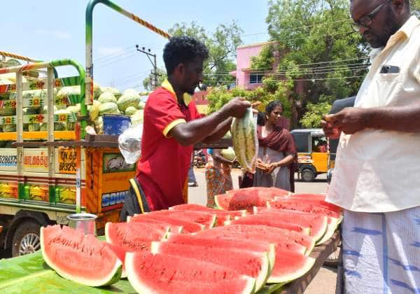 வெயிலின் தாக்கம் அதிகரிப்பால் சிவகங்கை வார சந்தையில் தர்பூசணி விற்பனை கலை கட்டியது.