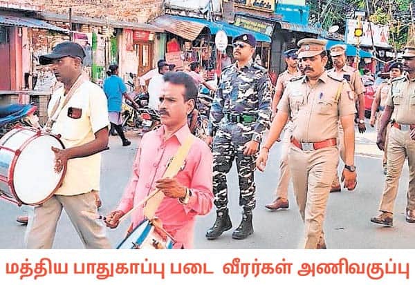 சட்டசபை தேர்தலை ஒட்டி, மத்திய பாதுகாப்பு படை வீரர்கள் அணிவகுப்பு பேரணி நடத்தினர். இடம்: ஆர்.கே.பேட்டை, திருவள்ளூர்.