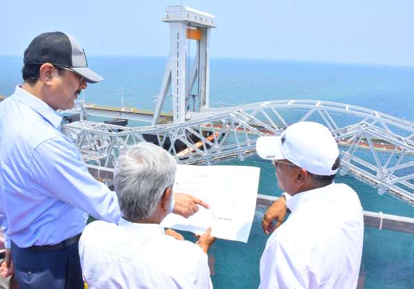 ராமேஸ்வரம் அருகே பாம்பன் புதிய ரயில் பாலம் ஏப்., 6ல் நடக்கவுள்ள திறப்பு விழா குறித்து தென்னக ரயில்வே பொது மேலாளர் ஆர்.என். சிங் ஆய்வு செய்தார்.