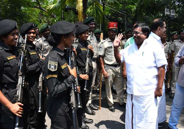 புதுச்சேரி சட்டசபை நிகழ்வு முடிந்த நிலையில் அவையை விட்டு வெளியே வந்த எதிர்க்கட்சித் தலைவர் சிவா பாதுகாப்பு பணியில் ஈடுபட்டிருந்த பெண் கமாண்டோ படைக்கு நன்றி தெரிவித்தார்.