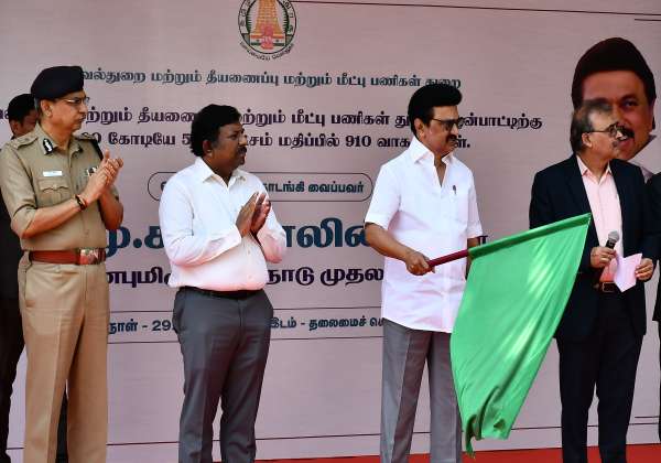 காவல்துறை, தீயணைப்பு மற்றும் மீட்பு பணிகள் துறை பயன்பாட்டிற்காக புதிய வாகனங்களை முதல்வர் ஸ்டாலின் கொடியசைத்து துவக்கி வைத்தார்.