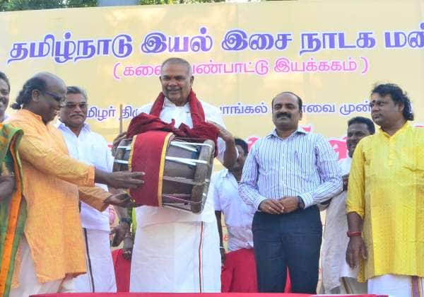 திருநெல்வேலியில் நடந்த கலை சங்கமம் விழாவில் சபாநாயகர் அப்பாவு தவில் இசைத்து மகிழ்ந்தார்.