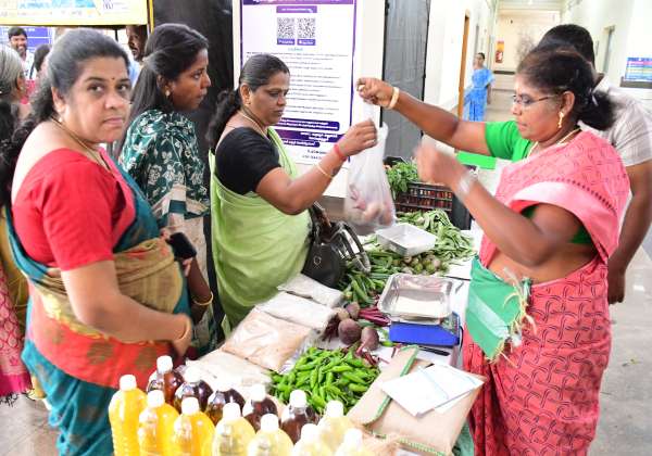 கோவை கலெக்டர் அலுவலகத்தில் விவசாயிகள் குறை தீர்ப்பு கூட்டத்தில் காய்கறி விற்பனை நடந்தது.