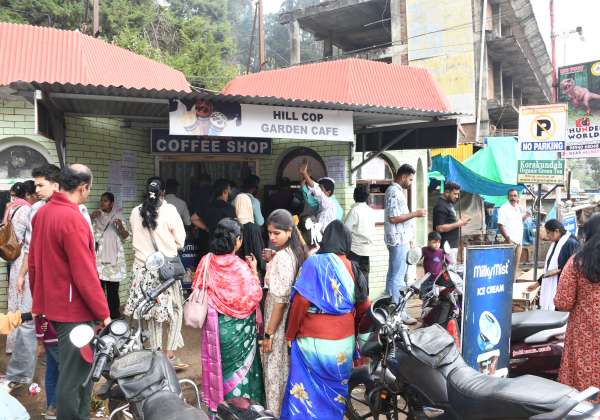 ஊட்டி தாவரவியல் பூங்காவை ஒட்டியுள்ள போலீஸ் கேன்டீனில் உணவு பார்சல் வாங்கி சென்ற சுற்றுலா பயணிகள்.