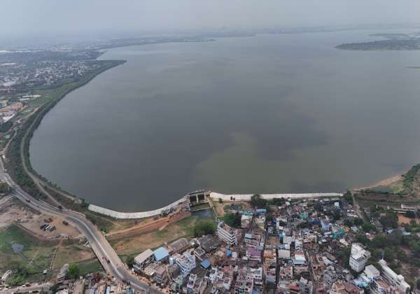 கோடை காலம் துவங்கி உள்ள நிலையிலும், நீர் நிறைந்து காணப்படும் சென்னை புழல் ஏரி.