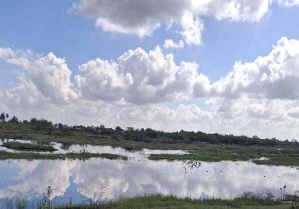 கோவையில் வானம் மேக மூட்டத்துடனும் , நீள வானத்தில் கருமேகங்கள் கலந்து காட்சியளித்த இடம்... கோவை, நாகராஜபுரம் குளம்.