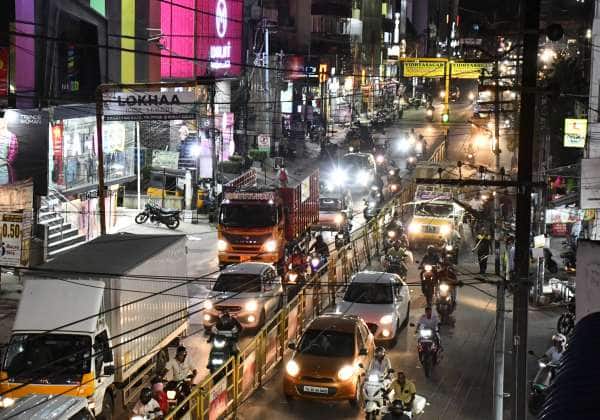 திருப்பூர், குமரன் ரோட்டில் போக்குவரத்து நெடுக்கடியாக உள்ளது.