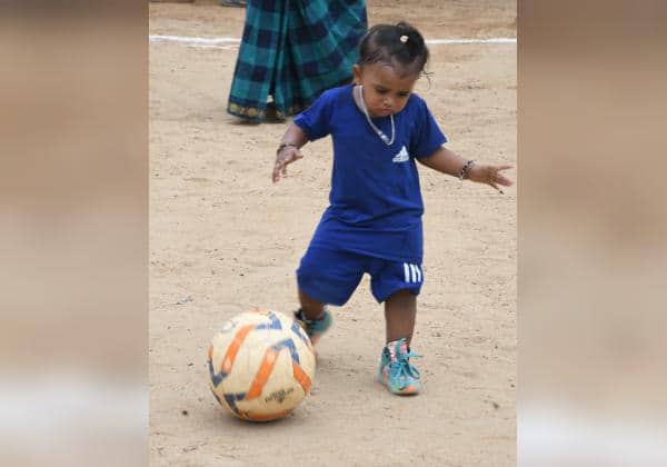 திருவள்ளூரில் நடைபெற்ற முன்னாள் முதல்வர் கருணாநிதியின் நூற்றாண்டு விழா விளையாட்டு போட்டியில் கலந்து கொள்ள பெற்றோர்கள் வந்திருந்தனர். அவர்களின் குழந்தைகள் ஆர்வத்துடன் கால்பந்து விளையாடினர்.