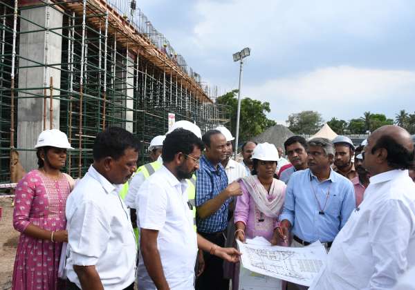 கோவை காந்திபுரத்தில் கட்டப்பட்டு வரும் பெரியார் நூலகம் மற்றும் அறிவியல் மைய கட்டுமான பணிகளை ஆய்வு செய்த பொதுப்பணித்துறை அமைச்சர் வேலு.