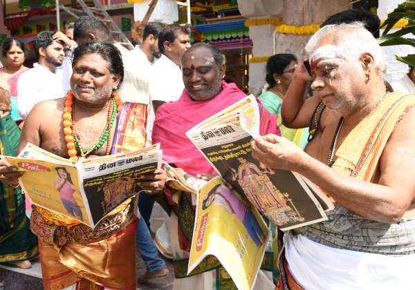 தினமலர் நாளிதழ் சார்பில் மருதமலை சுப்பிரமணிய சுவாமி கோவிலில் திருக்குட நன்னீராட்டு விழா குறித்த சிறப்பு மலர் பக்தர்களுக்கு இலவசமாக வழங்கப்பட்டது.
