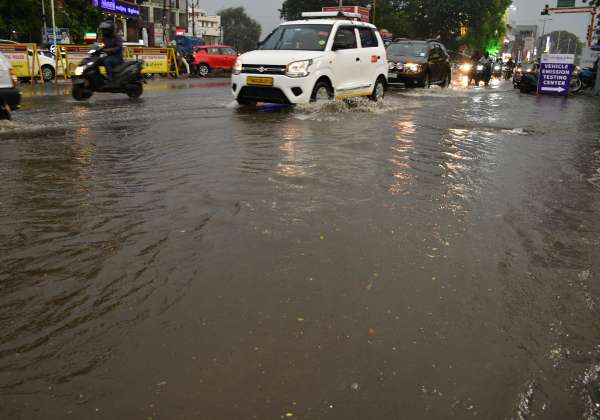 கோவையில் பெய்த கன மழையில் பூ மார்க்கெட் ரோட்டில் ஓடிய வெள்ளம்.
