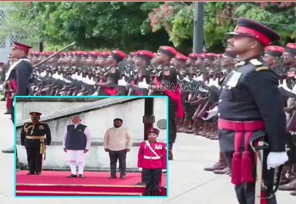 இலங்கை சென்ற பிரதமர் மோடிக்கு ராணுவ அணிவகுப்பு மரியாதை அளிக்கப்பட்டது.