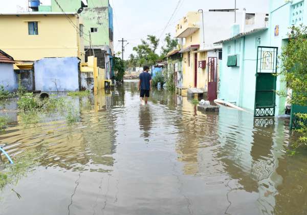 திருப்பூர், சுற்றுப்பகுதிகளில் நள்ளிரவில் பெய்த கனமழையால் குடியிருப்புகளில் மழைநீர் புகுந்தது. இடம் : கஞ்சம்பாளையம், அறிவொழி நகர்.