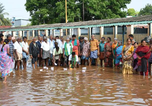 திருப்பூர் தெற்கு உழவர் சந்தையில் மழைநீர் குளம் போல தேங்கியது. இதனால் விவசாயிகள் தண்ணீரில் கப்பல் விடும் போராட்டம் நடத்தினர்.