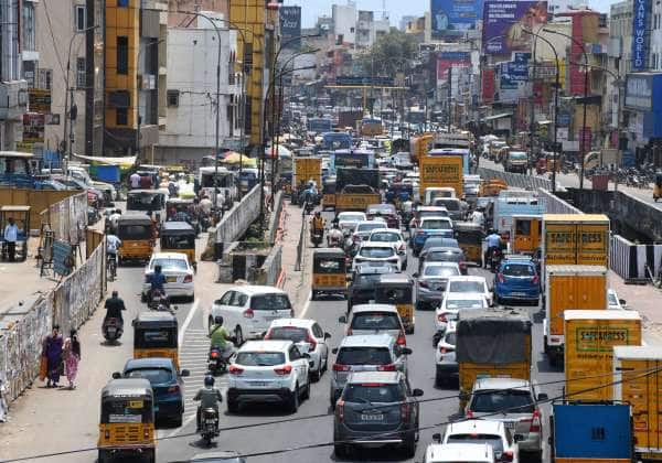பீக் ஹவர்ஸ் நேரங்களில் கடுமையான போக்குவரத்து நெரிசல் ஏற்படும் பூந்தமல்லி நெடுஞ்சாலை. இடம் : அமைந்தகரை.