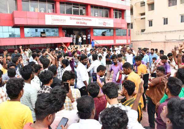 அஜீத் நடித்த குட் பேட் அக்லி திரைப்படம் ரீலீசை அவிநாசி ரோட்டில் உள்ள எஸ். ஏ. பி. தியேட்டரில் கொண்டாடிய ரசிகர்கள் . இடம்: திருப்பூர்.