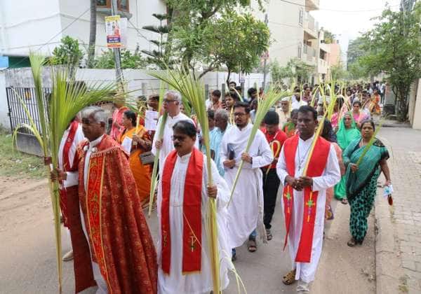 குருத்தோலை ஞாயிறு முன்னிட்டு ஏராளமான கிறிஸ்தவர்கள் கையில் குருத்தோலை ஏந்தி ஊர்வலமாகச் சென்றனர்.இடம். சாந்தோம் .