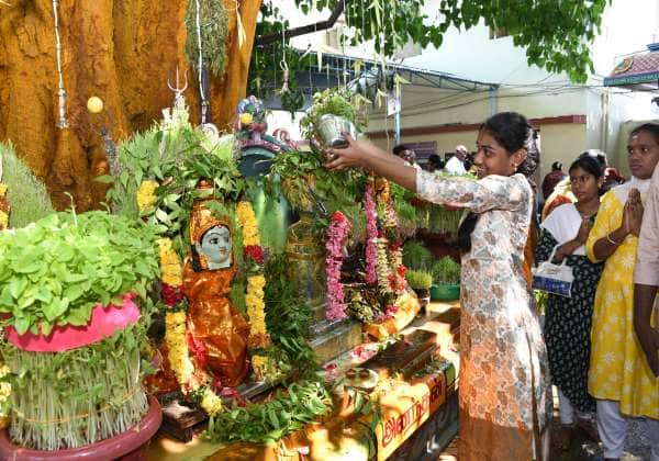 உடுமலை மாரியம்மன் கோவில் திருவிழாவையொட்டி மஞ்சளநீரூற்றி வழிபடும் பக்தர்கள் .