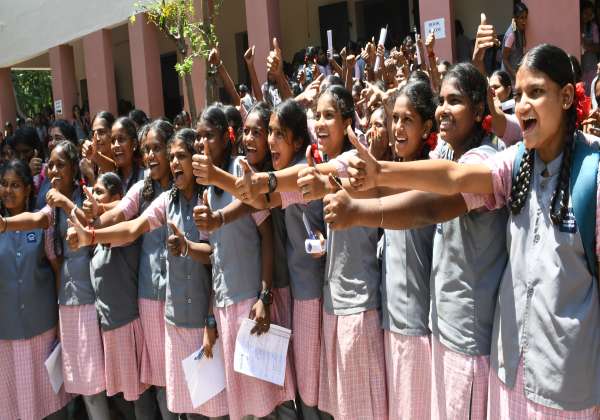 பத்தாம் வகுப்பு பொது தேர்வுகள் முடிவடைந்துள்ளது. அதனை மகிழ்ச்சியோடு கொண்டாடிய மாணவிகள், இடம்: ஜெய்வாபாய் பள்ளி, திருப்பூர்.