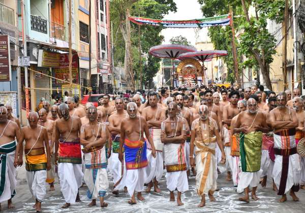 சென்னை திருவல்லிக்கேணி பார்த்தசாரதி பெருமாள் கோவில் பிரம்மோத்சவ விழாவின் நான்காம் நாளில், சூரிய பிரபை வாகனத்தில் பார்த்தசாரதி பெருமாள் வீதி உலா வந்தார்.