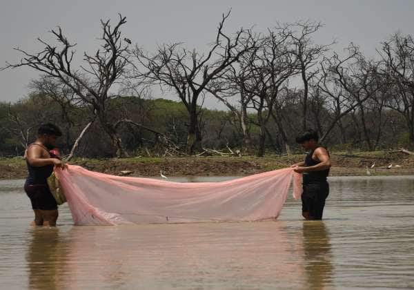 குளம் வற்றுவதற்குள் மீன் பிடித்து கொள்ளலாம். இடம், கோவை, கிருஷ்ணாம்பதி குளம்