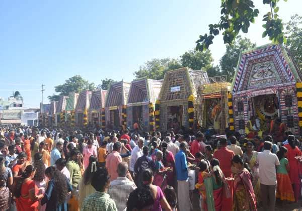 தூத்துக்குடி மாவட்டம் குலசேகரப்பட்டினம் முத்தாரம்மன் கோவில் தசரா திருவிழாவில் சூரசம்ஹாரத்திற்கு முன்பாக மின்னொளியில் ஜொலித்த கடற்கரையில் குவிந்த பக்தர்கள்.