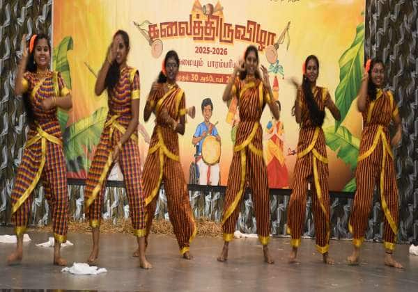 கோவை இந்துஸ்தான் கலை அறிவியல் கல்லூரியில் பள்ளி கல்வித்துறை சார்பில் நடந்த கலை திருவிழாவில் நாட்டுப்புற நடனமாடி பார்வையாளர்களை கவர்ந்த மாணவிகள்.