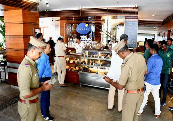 புதுச்சேரி கடற்கரை சாலை ப்ரோமோநெட் தனியார் ஓட்டலில் வெடிகுண்டு மிரட்டலை தொடர்ந்து போலீசார் சோதனைகள் ஈடுபட்டனர்.