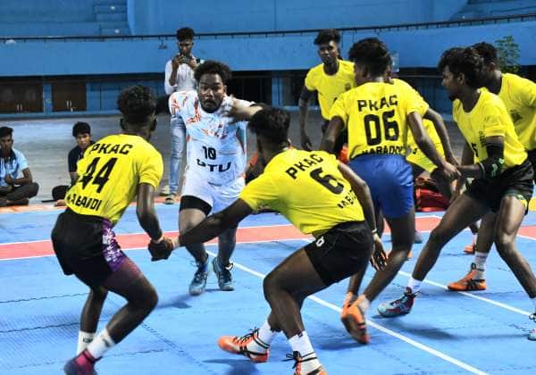 புதுச்சேரி ராஜீவ் காந்தி உள் விளையாட்டு அரங்கில் நடந்த முதல்வர் கோப்பை கபடி போட்டியில் புதுச்சேரி டெக்னாலஜி யுனிவர்சிட்டி மற்றும் மதகடிப்பட்டு காமராஜர் கலை கல்லூரி அணி மோதியது.