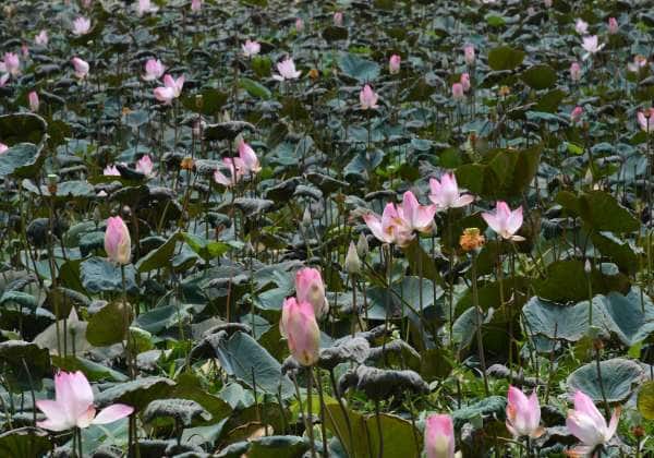 தூத்துக்குடி மாவட்டம் பெருங்குளம் அருகே உள்ள குளத்தில் பூத்துகுலுங்கும் தாமரை பூக்கள்.