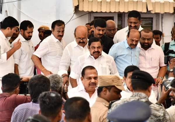 சென்னை தலைமைச் செயலகத்தில் நடக்கும் சட்டசபை கூட்டம் முடிந்து சென்ற எதிர்க்கட்சித் தலைவர் பழனிசாமி உடன் எம்.எல்.ஏக்கள்.