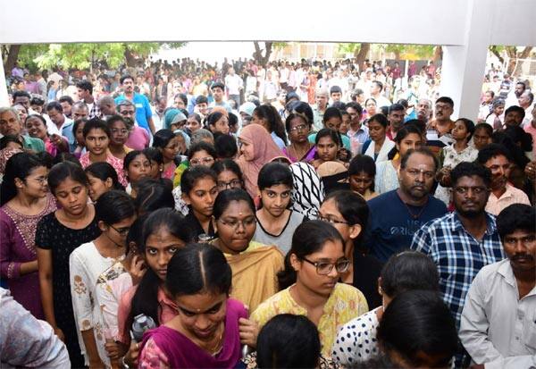 மதுரை மன்னர் திருமலை நாயக்கர் கல்லூரியில் தினமலர் நாளிதழ் ஸ்டாரட்ஸ் அகாடமி சார்பில் நடந்த 'நீட்' மாதிரி நுழைவுத் தேர்வில் பங்கேற்ற மாணவர்களுடன் பெற்றோர்கள் இணைந்து பங்கேற்றனர்.
