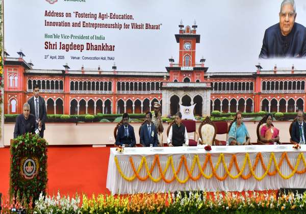 கோவை வேளாண் பல்கலையில், விக்சித் பாரத்துக்கு வேளாண் கல்வி புதுமை மற்றும் தொழில் முனைவோரை வளர்த்தல் எனும் தலைப்பில் நடந்த சிறப்பு நிகழ்ச்சியில் துணை ஜனாதிபதி ஜெகதீப் தன்கர் பேசினார்.