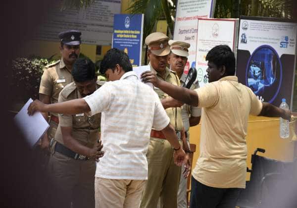 கோவையில் நீட் தேர்வு எழுத வந்த மாணவர்கள் தீவிர சோதனைக்கு பிறகு அனுமதிக்கப்பட்டனர். இடம்: அவினாசிலிங்கம் பல்கலை.